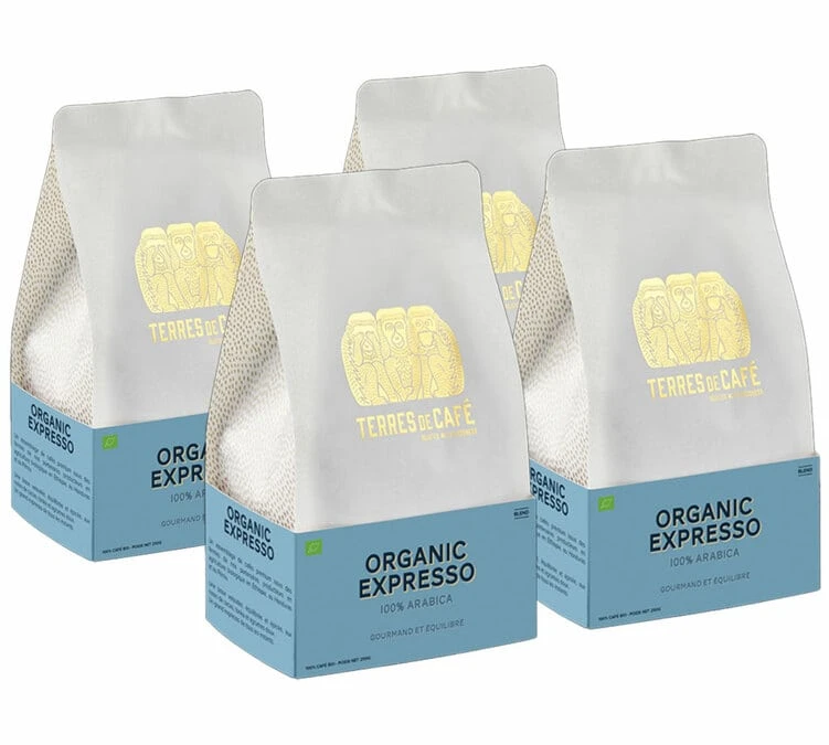 Découvrez le café en grain bio Organic Blend de Terres de Café – 4×250 g