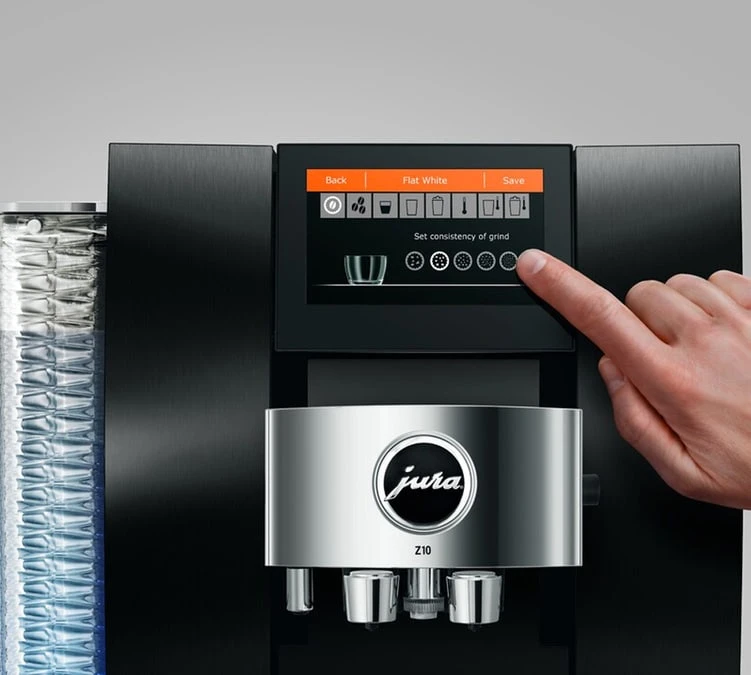 Cette machine à café à grain Jura Z10 Aluminium Black offre un parfait confort d’utilisation grâce à son large écran tactile couleur de 4,3″. Cet écran permet de choisir de façon intuitive chacun de ses réglages pour personnaliser au maximum toutes les recettes disponibles. Vous aurez aussi accès à toutes les étapes d’entretien facilement. Cet écran est couplé avec le Blue Crystal Rotary Switch offrant une utilisation simple et intuitive.