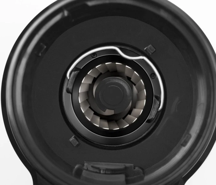 La meule supérieure se retire facilement pour un entretien simplifié.