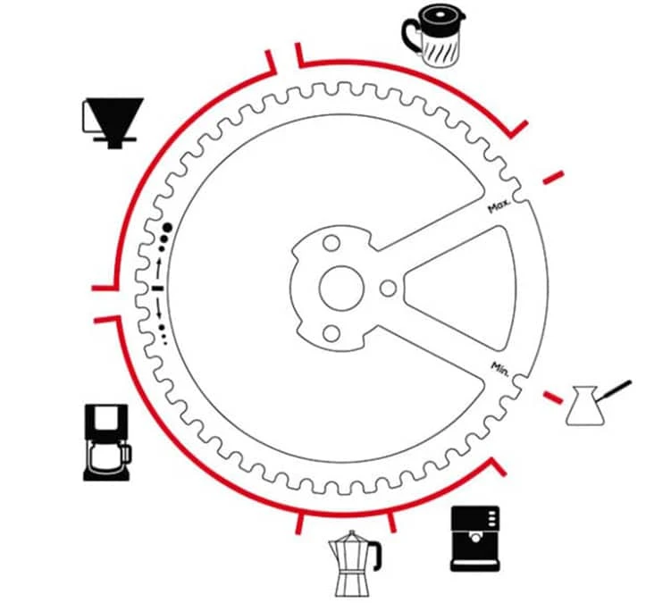 Ce moulin Kronos offre 43 réglages de mouture, pour pouvoir s’adapter à différentes méthodes d’extraction café. Sa taille permet de le poser sur son comptoir pour moudre avec plus de stabilité.